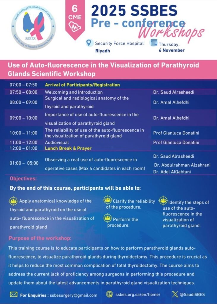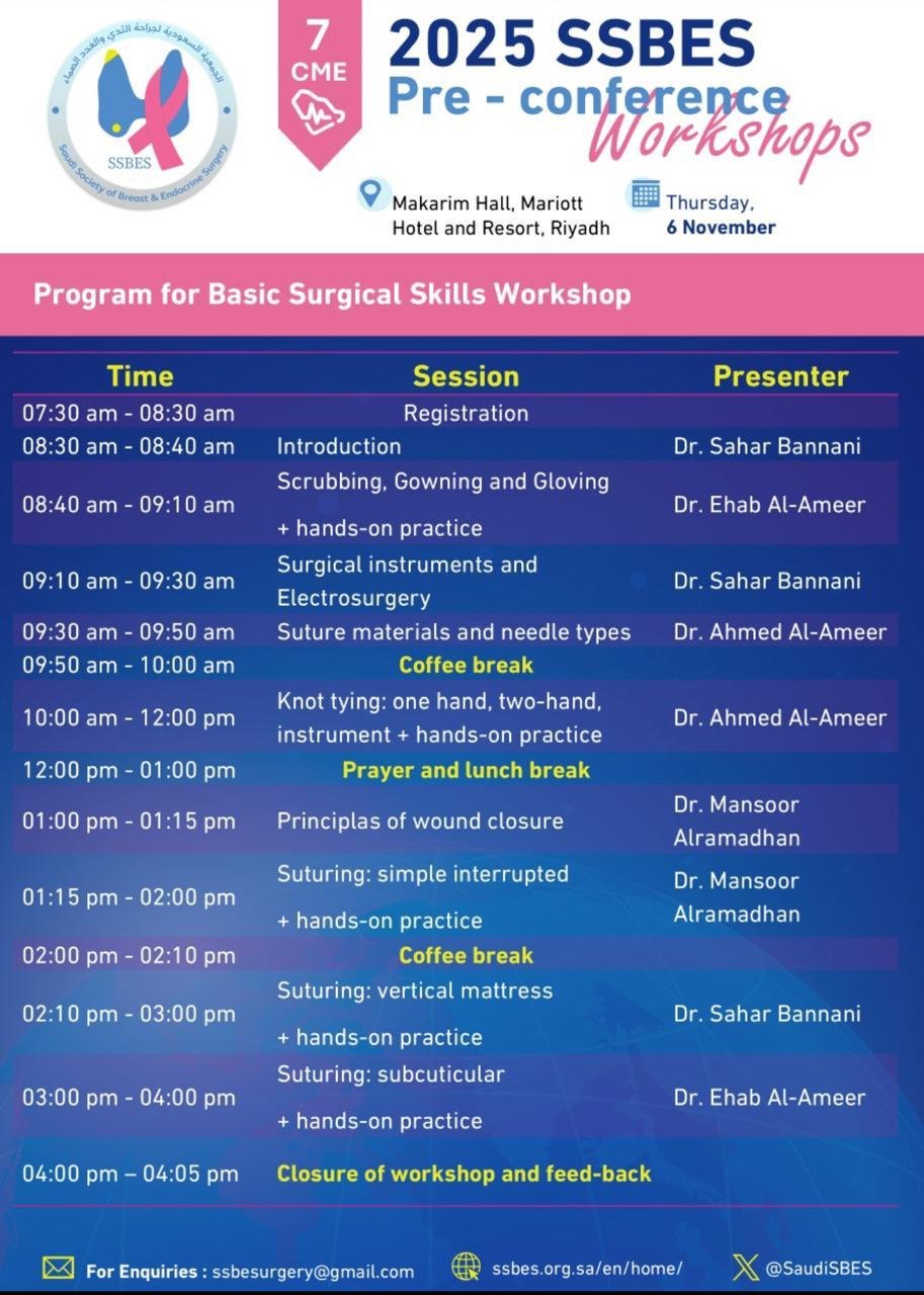 It is my great pleasure and honor to welcome you all to the 3rd Annual Conference of the Saudi Society of Breast and Endocrine Surgery (SSBES). This year’s gathering marks yet another important milestone in our shared journey to advance the fields of breast and endocrine surgery within the Kingdom of Saudi Arabia and beyond.